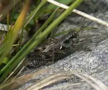 - ↑ "Melanoplus fasciatus Species Information". BugGuide.net. Retrieved 2018-05-05.