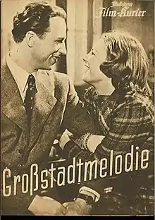 Melody of a Great City (German: Großstadtmelodie) is a 1943 musical drama film directed by Wolfgang Liebeneiner and starring Hilde Krahl, Werner Hinz and Karl John.[1] A young woman moves to Berlin to work as a press photographer.