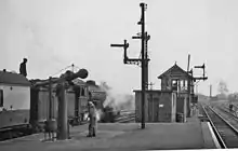 The station and junctions were controlled by two signal boxes at each end of the station and known as "Melton East" and "Melton West" boxes. They controlled typical M&GN somersault signals mounted on square posts, which were in some cases moulded from concrete.[17]