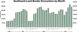 - ↑ MIROFF, NICK (September 19, 2022). "Arrests along U.S.-Mexico border top 2 million a year for the first time". Texas Tribune. Retrieved October 1, 2022.