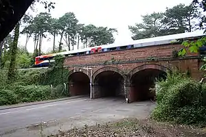 Trams were already well established in the area which led the Bournemouth Guardian newspaper to comment that, although the new station would be useful to golfers, the residents of Winton would most likely continue using the trams which were perceived as more flexible.[1] Local residents had in fact petitioned the LSWR for a station as early as 1894, but it is thought that even if one had been provided, its patronage would have been mostly lost to the trams in any case.[1] On 17 June 1914, 280 members of the Boscombe Corps of the Salvation Army made the short 1-mile-72-chain (3.1 km) trip from Meyrick Park Halt to Boscombe on the 7:40pm service from Bournemouth West to Christchurch.[7] This was probably the greatest number of people to ever board a train here; the railway company provided a conventional four coach train in place of the usual push-pull train, and a member of staff from Bournemouth Central was stationed at the halt to supervise boarding.[7]