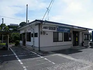The platform is attached to the station building, which is at a railroad crossing. A waiting room is next to the compounding of medicines drugstore which borrowed a station site, and was established and can use the inside in the business hours of the drugstore.