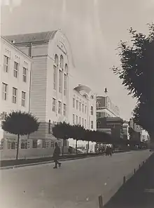 In 1933 she designed the Second Gymnasium for Girls, the same school that she attended as a young girl, at 31 Queen Natalia street,[lower-alpha 1] today the Electro-technical Gymnasium Nikola Tesla, it was constructed in place of the Girls College and the building of the State Council. She created a sumptuous building simple in modern Serbian-Byzantine style or neo-Byzantine.[7] The Second Gymnasium for Girls was designed without unnecessary decoration, the white facade and the rounded corners clearly show the influence of modernism and Milica Krstić's application of the principles of Bauhaus and Modernism. The building has been declared a cultural heritage in 1964.[8]