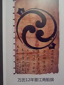 After the period of maritime activity during the treasure voyages under the Yongle Emperor, the official policy towards naval expansion swayed between active restriction to ambivalence.[36] Despite Ming ambivalence towards naval affairs, the Chinese treasure fleet was still able to dominate other Asian navies, which enabled the Ming to send governors to rule in Luzon and Palembang as well as depose and enthrone puppet rulers in Sri Lanka and the Bataks.[38] In 1521, at the Battle of Tunmen a squadron of Ming naval junks defeated a Portuguese caravel fleet, which was followed by another Ming victory against a Portuguese fleet at the Battle of Xicaowan in 1522. In 1633, a Ming navy defeated a Dutch and Chinese pirate fleet during the Battle of Liaoluo Bay. A large number of military treatises, including extensive discussions of naval warfare, were written during the Ming period, including the Wubei Zhi and Jixiao Xinshu.[40] Additionally, shipwrecks have been excavated in the South China Sea, including wrecks of Chinese trade and war ships that sank around 1377 and 1645.[41]