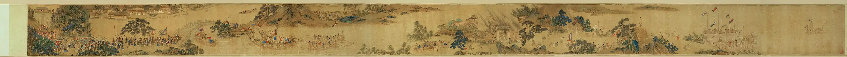 Ming naval activity was noticeably subdued. Its founder, the Hongwu Emperor, emphasized that "not even a plank is to be allowed into the sea."[36] He did however establish the Longjiang Shipyards of Nanjing that would grow into the birthplace of the Treasure Fleet. The Ming Navy was also equipped with firearms, making them one of the earliest gunpowder armed navies at the time. It was therefore described by Lo and Elleman as the world's "foremost" navy of that era.[38]