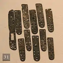 Brigandine armour was used during the Ming era and consisted of riveted plates covered with fabric.[78]