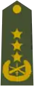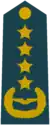 | Gjeneral | Gjeneral Kolonel | Gjeneral Lejtnant | Gjeneral Major | Kolonel | Nënkolonel | Major | Kapiten i parë | Kapiten | Toger | Nëntoger | ||||||||||||||||||||||||||