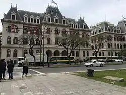 The Ministry of Agriculture has been headquartered at Av. Paseo Colón 922, in the Buenos Aires barrio of San Telmo, since 1919. The original design, drafted in 1911, is an eclectic building with Tudor, Gothic Revival and Beaux-Arts influences, representing the various currents and the architectural eclecticism popular in late 19th and early 20th century Buenos Aires.[19] The complex consists of two twin buildings, the older of which houses the Agriculture Ministry, while the newest (inaugurated in 1931) originally served as the headquarters of Yacimientos Petrolíferos Fiscales, and later became the offices of the Dirección de Meteorología Nacional (now the Servicio Meteorológico Nacional).[20] The overall work was designed by the Kimbau y Cía and the Andrés Vanelli e Hijos architectural studios.[21]