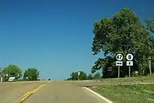 The gravel road that became MS 47 has existed at least since 1928, from West Point to Houston.[8] By 1934, the road was designated as MS 47, starting at MS 10 and ending at MS 8.[9][10] MS 8 was rerouted south of Buena Vista to Trebloc by 1944, and the northern terminus of MS 47 remained at Buena Vista.[11][12] A section of MS 47 near MS 10 was paved by 1953,[13][14] and another from south of the Clay–Chickasaw county line to MS 8 by 1955.[14][15] All of the route south of MS 8 was paved by 1957, and a new gravel road was constructed north of MS 47 to MS 32.[16][17] The gravel road was designated as MS 385 one year later.[17][18] After being proposed in July 1957,[19] the section from Trebloc to Buena Vista was paved by 1958.[17][18] MS 10 was renumbered to MS 50 by 1960.[18][20]