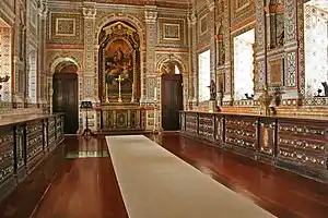 The beautiful main altarpiece is a Baroque work of the 18th century by one of the best Portuguese sculptors, Joaquim Machado de Castro. It has the shape of a baldachin and is decorated with a large number of statues. The church also boasts several fine altarpieces in the lateral chapels.