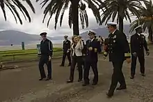 Personnel of USS Anzio (CG-68) walking in Tivat, Montenegro.