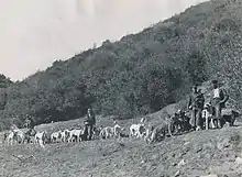 This type of hunting consists of the use of a very high number of dogs that, led by their drivers, beat the ground to hunt in order to direct all kinds of animals towards the hunters (generally deer, wild boar, fallow deer and mouflon).[17]