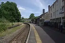 In 2004, the Severnside Community Rail Partnership was formed, covering the Severn Beach Line and a network of routes radiating from Bristol.[19] By 2008, they had created a support group for the station, were helping with station upkeep, and had improved the provision of timetabling information through the use of simplified departure timetable posters.[10] In 2007, they repainted the mural on the old station building, but it was defaced by vandals the same year. First Great Western offered a £500 reward for identifying the persons responsible, and stated they planned to install CCTV cameras.[34] Students from Fairfield High School repainted the mural with help from professional graffiti artist Richard Minchin.[35] Artist Wei Ong repainted the mural in 2015, and it was repainted again in 2017 by street artist Silent Hobo.[12][36] Customer help points with next train information screens were installed during 2008/09, paid for by money from the Department for Transport's "Access for All" fund and local councils.[37] The help points were stolen in early 2010, but have since been replaced.[2][38][39] A large number of trees north of the station, which had provided noise mitigation and stabilised the embankment, were felled in 2018 by local residents, without permission from Network Rail.[40][41]
