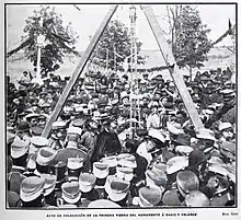 The laying of the foundation stone was held on 6 May 1908,[1] on the occasion of the festivities taking place in early May for the 100th anniversary of the Dos de Mayo uprising.