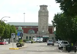 Moose Jaw station is a former railway station in Moose Jaw, Saskatchewan, Canada. It was designed by Hugh G. Jones and built by the Canadian Pacific Railway from 1920 to 1922. The station comprises a two-story waiting area, four storey office block and six-storey Tyndall stone clock tower.[1] The building was designated a historic railway station in 1991. [2]