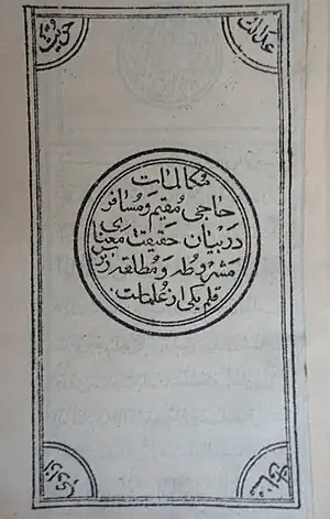 Mokalemate Moqim va Mosafer (transl.Conversation of the Resident and the Traveler, Persian: رساله مقیم و مسافر) is a political treatise by Noorollah Najafi Isfahani. The treatise was published in Isfahan in July 1909.[1][2] This treatise was written in the years between the first and the second Persian Constitutional Revolution. In this treatise, the author presents an Islamic version of the constitutional political system.[3][4] The treatise Moqim va Mosafer, which was written in constitutional history, took a prominent place in its political treatises and explored the concept of constitutional jurisprudence with the idea of a "powerful government". The treatise Moqim va Mosafer proved by the powerful principle that injustice of the constitutional state are less than monarchy and almost controllable; yet it believes that if the constitution leads to mass despotism, there will be a great deal of tyranny that cannot be easily reformed.[5]