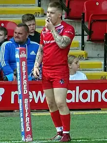 He has played for the Warrington Wolves in the Super League, and on loan from Warrington for the Rochdale Hornets in the Betfred Championship.[3][4] Smith has also played for the London Broncos in the Betfred Super League and the Championship.