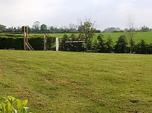 A special gating crossing existed near the station for the use of local huntsmen, a key being provided to the local Master of Foxhounds. In 1912, the Stratford-upon-Avon and Midland Junction Railway, which had amalgamated with the E&WJ in 1908, agreed to cover all drains along the line and to replace barbed wire with ordinary wire in order to minimise the risk of injury to horse and hound.[6] In an attempt to boost passenger traffic, the station began to appear as Morton Pinkney for Sulgrave in timetables from January 1913, the railway company hoping that the mention of Sulgrave, the location of the home of George Washington's ancestors, would encourage tourists to use the line.[7] Passenger traffic continued to tail off and the station was finally closed in 1952, though the line through the station remained open for freight trains between Woodford West junction and Blisworth until 7 February 1964.[8]