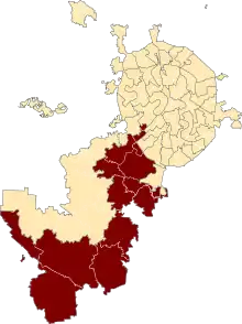 | Districts | Desyonovskoye, Filimonkovskoye, Kiyevsky, Klenovskoye, Moskovsky, Mosrentgen, parts of Prospekt Vernadskogo, Rogovskoye, Ryazanovskoye, Shachapovskoye, Shcherbinka, Sosenskoye, parts of Troparyovo-Nikulino, Voronovskoye, Voskresenskoye |