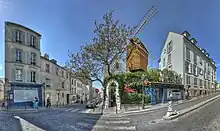The windmill Moulin de la Galette, also known as Blute-fin, was built in 1622.[1][2] The name Blute-fin comes from the French verb bluter which means sifting flour for the separation from bran.