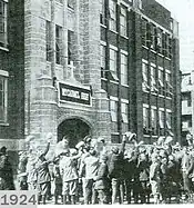 In the Fall of 1900, the Carmelite order established St. Cyril College at 54th and Jefferson (now Harper) on Chicago's South Side.[12] In the first year there were 13 students and five priest teachers. The following year the college was moved to 64th and Washington (now Blackstone) because of the need for a larger building and better access to public transportation. The St. Cyril College Building at 64th and Star (now Dante) was completed in 1902, and classes began with 137 students and 11 faculty members.[13] The school was consecrated by Bishop Peter Muldoon on August 10, 1902; a delay caused by the death of Archbishop Patrick Feehan.[14]