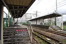 The short platform (platforms 3 and 4) for the Ōkawa branch line was used until March 1996, when the branch line started operating three-car trains that were longer than the platform.[3]