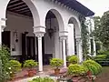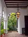 The former Larreta home, designed by Argentine architect Ernesto Bunge, for Francisco Chas Belgrano and his wife Catalina de los Remedios Salas and inaugurated in 1886, is a work of neo-Spanish colonial architecture, and features an Andalusian patio measuring 6,500 m² (70,000 ft²) and connected to the house via an extensive portico. The property was purchased by Larreta's mother-in-law, Mercedes Castellanos de Anchorena, and given to the newlywed couple in 1903.[3] Much as Martín Noël did with the property that later became the Isaac Fernández Blanco Museum, Larreta had the home expanded and refurbished along neo-colonial lines (restauración nacionalista, as the designs were known). Historical, as well as religious, designs were used, and the ornamented portal, for instance, was a copy of the entry to the Casa Basavilbaso (a former customs house which had earlier been demolished). Completed in 1916, these works were designed by Christian Schindler.[4]