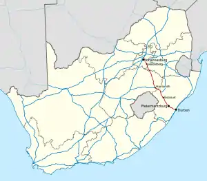 The N3 is a national route in South Africa that connects Johannesburg and Durban,[1] respectively South Africa's largest and third-largest cities. Johannesburg is the financial and commercial heartland of South Africa, while Durban is South Africa's key port and one of the busiest ports in the Southern Hemisphere and is also a holiday destination. Durban is the port through which Johannesburg imports and exports most of its goods. As a result, the N3 is a very busy highway and has a high volume of traffic.