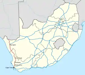 1. Falkner, John (May 2012). South African Numbered Route Description and Destination Analysis (Report). National Department of Transport. pp. 20–21. Archived from the original on 6 June 2014. Retrieved 12 August 2014.
