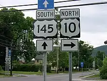 NY 145 overlaps NY 10 briefly in Cobleskill, although erroneous US-style shields are used to denote