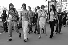 On March 3, 2008, she was detained by police at a dissenters march in Moscow.[16] Tolokonnikova was among the Voina members who disrupted a trial for the director of the Andrei Sakharov Center in 2009.[17][18] But later, according to the "Rossiyskaya Gazeta", together with Pyotr Verzilov were expelled from Voina "for provocation and surrender of activists of the group to the police".[19]