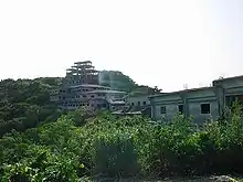 It is believed to have been built by a wealthy businessman from Naha in order to take advantage of the 1975 Okinawa Ocean Exposition. The hill directly South of Nakagusuku Castle was chosen as the construction site because of the view of both the Pacific Ocean and the East China Sea. There were warnings given by monks from a nearby Buddhist temple that the site was home to numerous graves and sacred sites, but they were initially ignored. After many construction accidents, the workers refused to finish the complex as they felt that the place was cursed. The businessman tried to prove the place was not cursed by spending a night at the unfinished hotel only to go completely mad the next day and disappeared soon after. It now sits empty and overgrown by vegetation.[1]