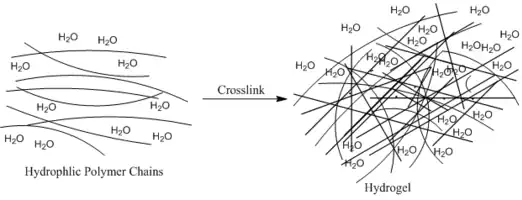 The hydrogel structure consists of cross-linked hydrophilic polymer chains.