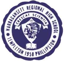 Narragansett Regional High School (NRHS) is a US public high school serving students from the towns of Templeton, Massachusetts and Phillipston, Massachusetts, United States. The principal is Colby young Vasil, previously principal of Millbury Jr./Sr. High, began her tenure with Narragansett on July 1, 2016. The vice principal is Colby Young. The Narragansett Regional School District superintendent is Christopher Casavant. The school is located in Baldwinville, a village that is part of Templeton.