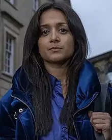 Radio Times described Nasreen as a "brave hearted soul", "strong and intelligent", as well as "extremely close to her best friend Missy".[1] They added that she "knows who she is, but navigating her sexuality and the expectations of her family and community is quite a challenge".[1] Actress Hickman voiced her admiration for the character, and likes that she is a determined person.[2] Hickman has talked about the impact that Nasreen being a lesbian Muslim has had, such as Asian girls tweeting her or approaching her in real life to thank her for the storyline. She stated that she does not just portray the role for a job, but felt that it is "something for the greater good".[2] Hickman described Nasreen's decision to not enter an arranged marriage as a "huge step", and stated that since Nasreen is only 17, she wants to have fun dating. She added that she is happy that Nasreen became "more of a normal teenager", and that when she read the scripts, she was pleased to see her character having more fun.[2] Hickman likened the character to herself in the sense that friendship are important to the pair of them.[3] Hickman stated that she feels a sense of pressure to portray Nasreen, due to the responsibility she feels due to how "important it is". In 2018, it is announced that Nasreen will develop a relationship with Sam.[4] Hickman stated that Nasreen is "definitely ready" for a romantic relationship, adding that "someone comes into her life that is completely right for her and she ends up falling in love".[5]