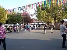 The Festival usually takes place at Exhibition Park in Canberra, which for the duration resembles a small, vibrant and colourful village full of music and dance venues, cafes, themed bars and stalls, as well as a unique 'Community Arts' area for demonstrating and workshopping a range of arts disciplines, as well as the 'Tradition Bearers' demonstration area where visitors can view the making of a range of Australian craft and purchase unique gifts. There is a traditional Bush Camp that resembles an archetypal bush scenario with authentic performances and delectable bush-style damper and stew and Billy Tea. Camping is provided adjacent to the Festival grounds for up to 5,000 people. In 2011 the event was attended by approx 50,000 people.[5] Approximately 800-1100 volunteers make the festival possible.[6]