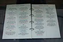 The memorial contains the UK Police Roll of Honour behind a glass panel, containing the names of approximately 4,000 officers killed whilst on duty, in the course of effecting an arrest or whilst carrying out hazardous duties.[8] The earliest entry is that of Watchman Isaac Smith, who died of injuries in 1680.[16] The book is compiled from the approximately 4,000 names recorded by the Police Roll of Honour Trust,[17] listing all officers who have died in the line of duty.[3]