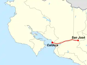 - ↑ Loaiza N., Vanessa (12 February 2005). "Avanza negociación para construir la vía a Caldera". Retrieved 23 September 2019.