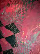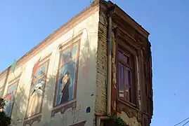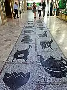 In even worse conditions is Quinchamalí (1958) at the Juan Esteban Montero Gallery: the paint of the mural is peeling and warping due to the humidity. The art restorer Carolina Broschek maintains that the mural can be saved, but the owner of the building on which it is painted, Yusif Tala, opined that the Nemesio Antúnez Foundation should take care of the painting or move it to another place, as has no interest in preserving it.[3] In the same gallery, besides the mural, Antúnez installed floor mosaics which are still in perfect condition.