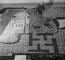 Poggi was commissioned for works by Emperor Haile Selassie of Ethiopia, creating public works in urban centers within both Eritrea and Ethiopia. Within these works, she sought to merge mid-20th century art movements with the African culture of her surroundings.[3] She was also commissioned by others in the governments of Eritrea and Ethiopia, as well as private entities in the region.[1] These large-scale mosaics were created in public squares, churches such as the Mariam Orthodox Cathedral in Asmara,[5] the City Hall in Addis Ababa,[6] United Nations buildings in Addis Ababa,[7] and educational institutes. Her artwork involved both landscapes in the region and portraits of local residents, including both living portraits and expressionist works of others.[1]