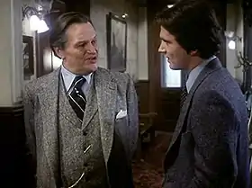 In 1976 Paramount Television purchased the rights for the entire set of Nero Wolfe stories for Orson Welles.[2][3] Paramount paid $200,000 for the TV rights to eight hours of Nero Wolfe.[4] The producers planned to begin with an ABC-TV movie and hoped to persuade Welles to continue the role in a mini-series.[5] Frank D. Gilroy was signed to write the television script ("The Doorbell Rang") and direct the TV movie on the assurance that Welles would star, but by April 1977 Welles had bowed out.[6]