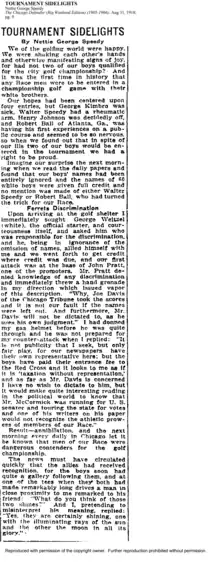 14. "Prejudice and Diplomacy work ill to golfers". The Chicago Defender, N. S.,1922