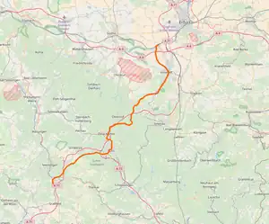 Despite some operational problems, such as slopes with a maximum grade of 2.38% in the Thuringian forest and the need to reverse trains running to Würzburg in Schweinfurt, the line was a major long-distance north–south link until 1945. It was the shortest route between Berlin and Stuttgart.