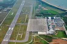 New Ishigaki Airport replaces Ishigaki Airport, which was originally built during World War II as a military airstrip by the Imperial Japanese Army.[Note 2][12][11] Korean laborers were used for the construction of the military airstrip.[14] The airstrip was built in the Maezato and Ōhama districts of Ishigaki, and opened in September 1942. The airstrip was used for the deployment of kamikaze units to attack American ships anchored off Okinawa Island during the Battle of Okinawa.[15]