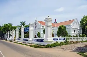 The New Jerusalem Church (Tamil: புதிய எருசலேம் தேவாலயம், தரங்கம்பாடி) was built in 1718 by the Royal Danish missionary Bartholomaeus Ziegenbalg in the coastal town of Tranquebar, India, which was at that time a Danish India colony.[1] The church is located on King Street,[2] and church services are conducted every Sunday.[3] The church, along with other buildings of the Tranquebar Mission, was damaged during the tsunami of 2004, and were renovated at a cost of INR 7 million, and re-consecrated in 2006.[1][4]
