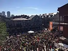 Visitors enjoying a public event hosted by the New Orleans Jazz Museum. View of Barracks Street courtyard.