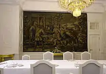 The Tapestry Room (Gobelinzimmer), once a mayor's office, owes its name to the two large French tapestries depicting the return of Artemis, daughter of Zeus, to Mount Olympus and the death of Otos.
