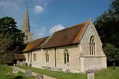 The Church of England parish church of Saint Giles[11] was built in the 12th century, its transepts were added in about 1200 and the west tower and spire were added early in the 14th century.[12] The building is Grade I listed.[13] The tower has a ring of four bells. Roger Landen of Wokingham, Berkshire cast the second bell in about 1450. Robert Eldridge of Wokingham cast the treble bell in 1592. Henry I Knight of Reading, Berkshire cast the tenor bell in 1608. Abraham II Rudhall of Gloucester cast the third bell in 1719. For technical reasons the bells are currently unringable. St Giles' also has a Sanctus bell that Ellis I Knight of Reading cast in 1639.[14] Gilbert Sheldon held the living of the parish for a time in the 17th century. Sheldon also simultaneously held the livings of Hackney, Ickford, Buckinghamshire and Oddington, Oxfordshire. After the Restoration of the Monarchy, Sheldon was consecrated Archbishop of Canterbury in 1663.
