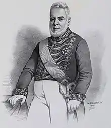 Nicolau Pereira de Campos Vergueiro, better known as Senator Vergueiro (Portuguese: Senador Vergueiro) (20 December 1778 – 17 September 1859), was a Portuguese-born Brazilian coffee farmer and politician. He was a pioneer in the implementation of free workforce in Brazil by bringing the first European immigrants to work in the Ibicaba farm, which he owned.[1] The contract was prepared by Vergueiro himself, establishing ownership of the production and other measures, mostly of an exploitive nature. Faced with this, the immigrants working in Vergueiro's main property, the Ibicaba farm, revolted under the guidance of Thomas Davatz, a Swiss immigrant and religious leader, who instigated the immigrant workers to grow their ambition to become small or medium-sized landowners, as they imagined they would be when they had left Europe.