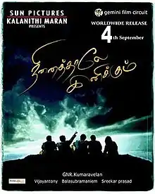 Ninaithale Inikkum (transl.Sweet Memories) is a 2009 Indian Tamil-language drama film directed by G. N. R. Kumaravelan. It is a remake of the 2006 Malayalam film Classmates. Prithviraj reprises his role from the original film, the film co-starred Shakthi Vasu, Priyamani, Karthik Kumar, Anuja Iyer, Vishnupriyan, K. Bhagyaraj and Manobala. The soundtrack was composed by Vijay Antony.